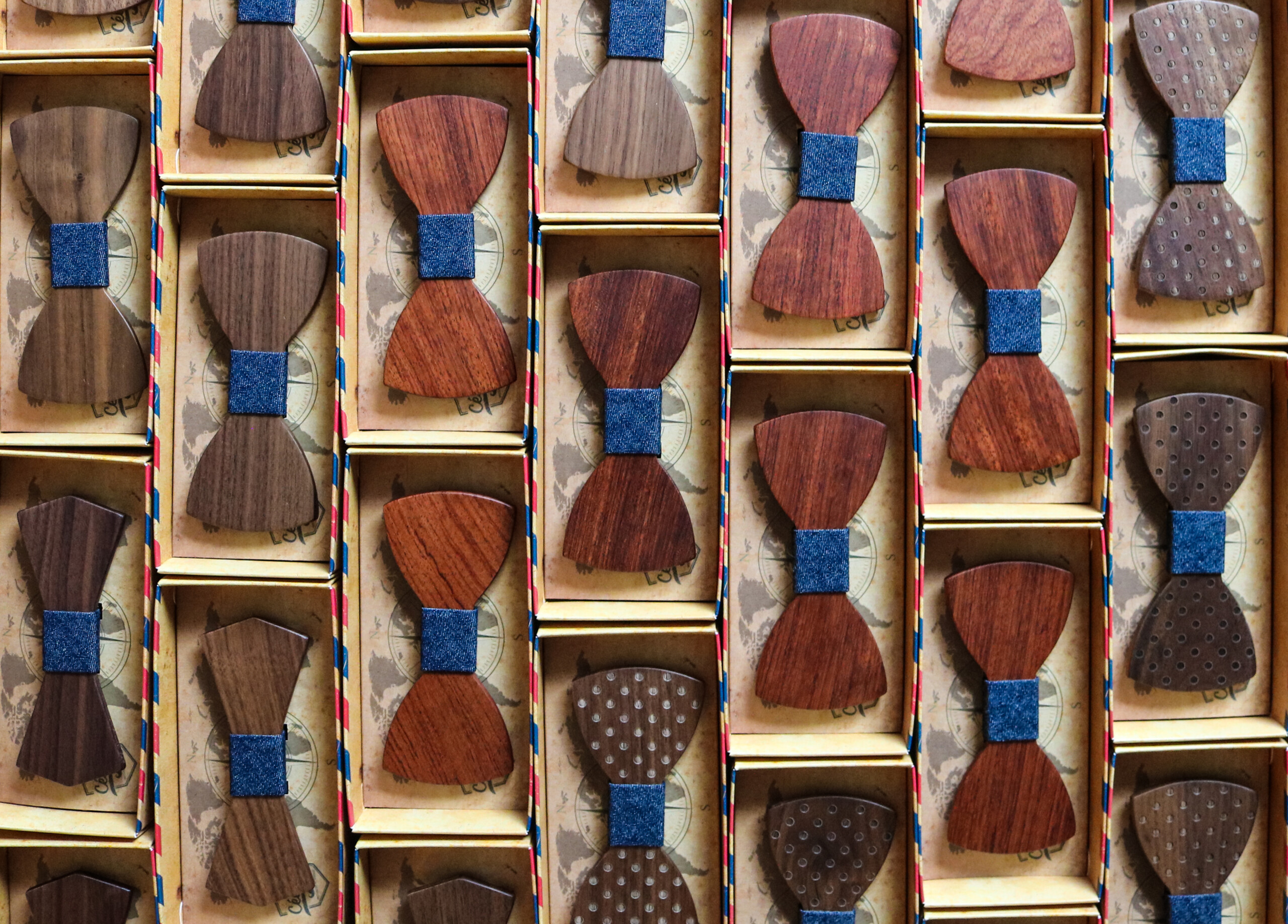 En soie, en polyester, en coton, en lin, en jute, en liège ou en bois… Il y a presqu’autant de matières dans les nœuds papillon que de couleurs et de motifs. Vous savez quoi? On peut même assortir les nœuds papillon des garçons d’honneur à celui du marié!